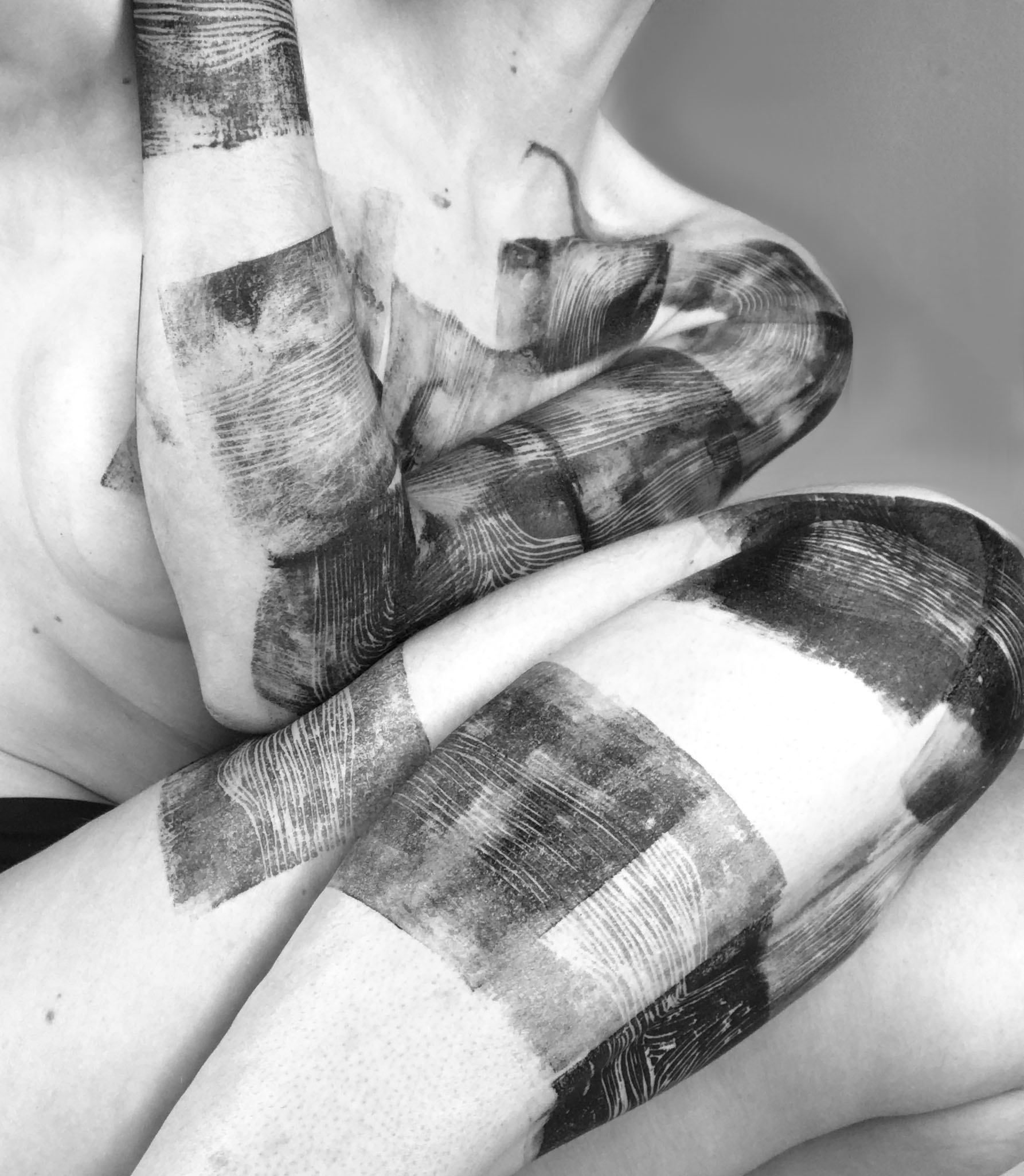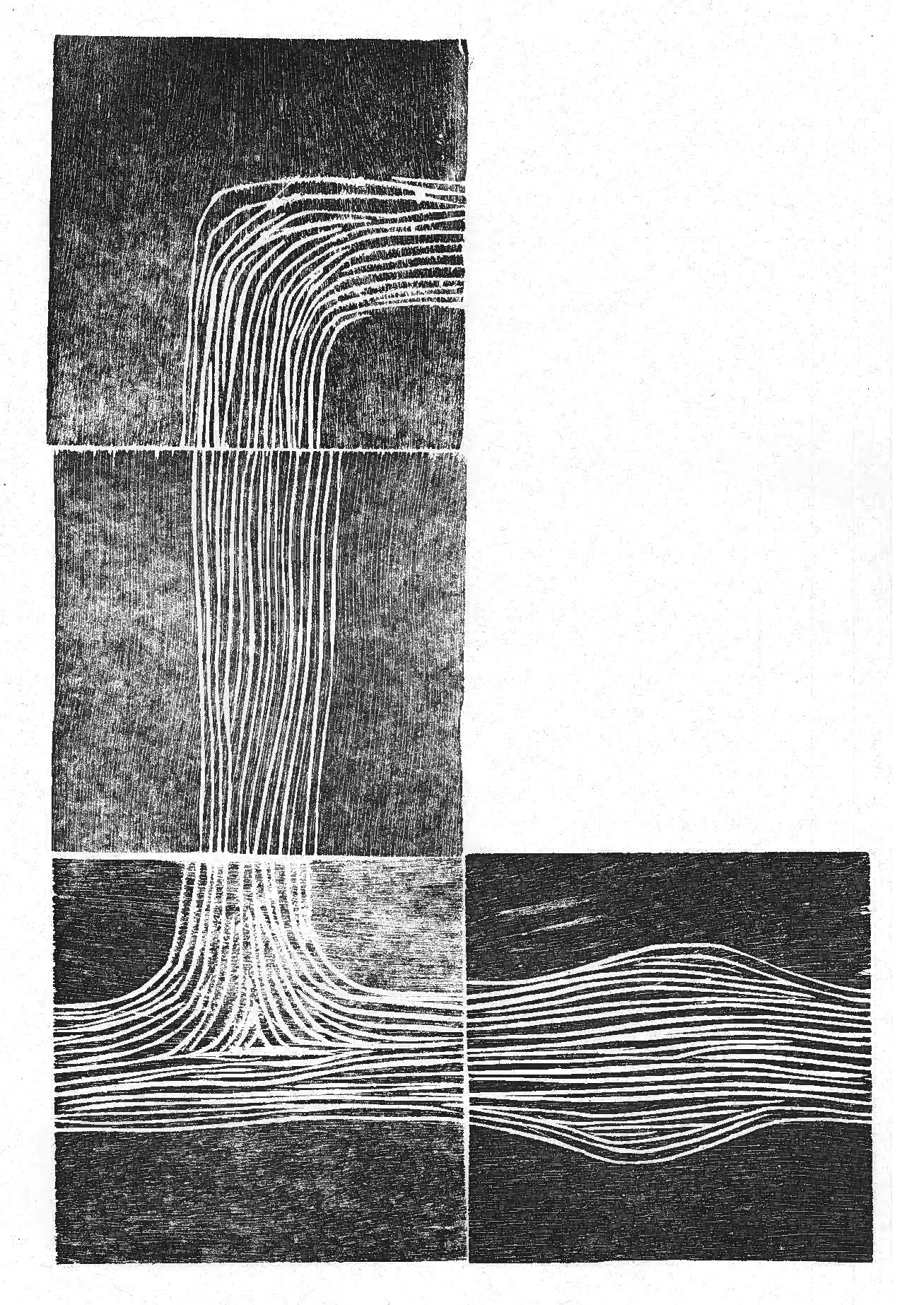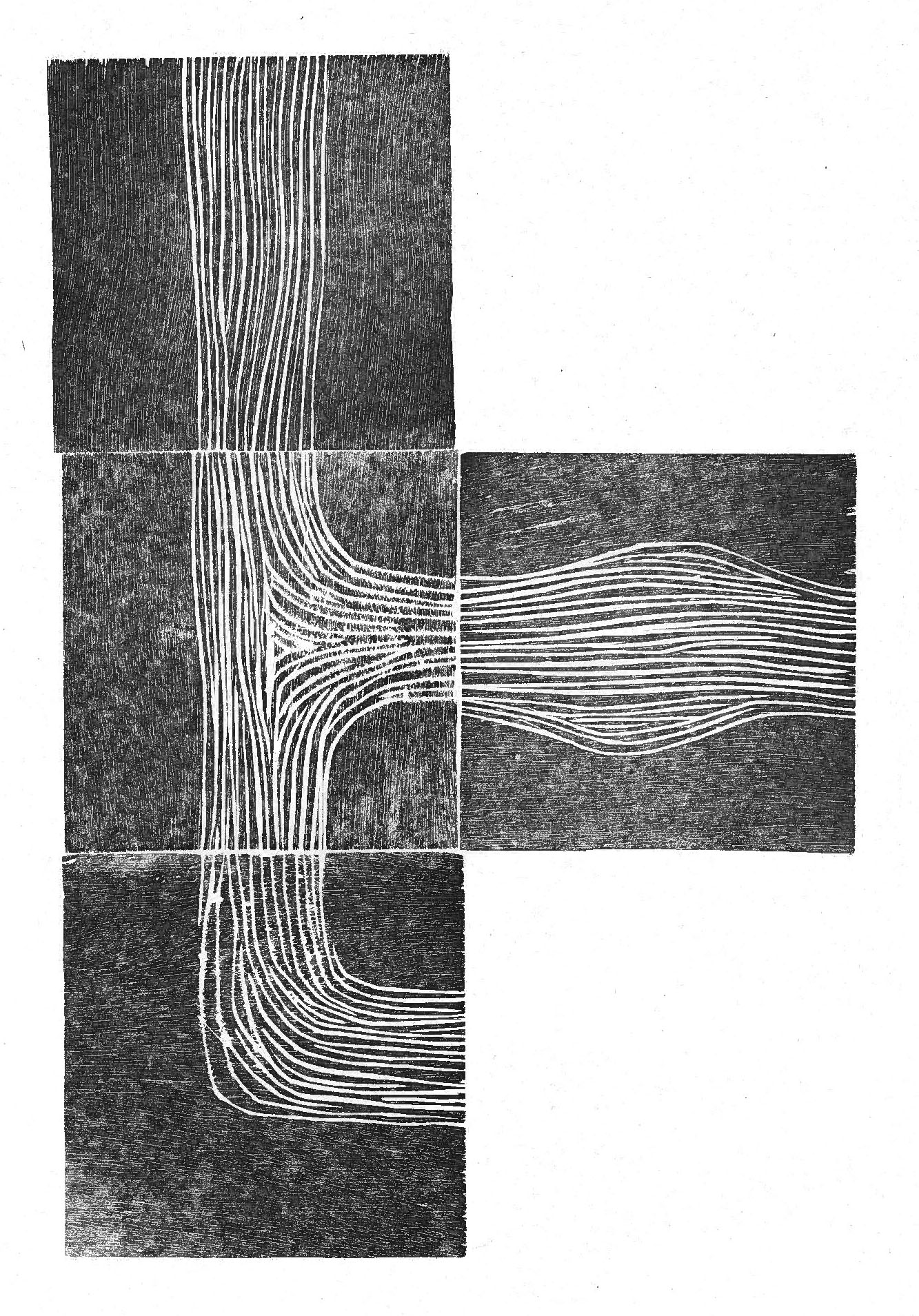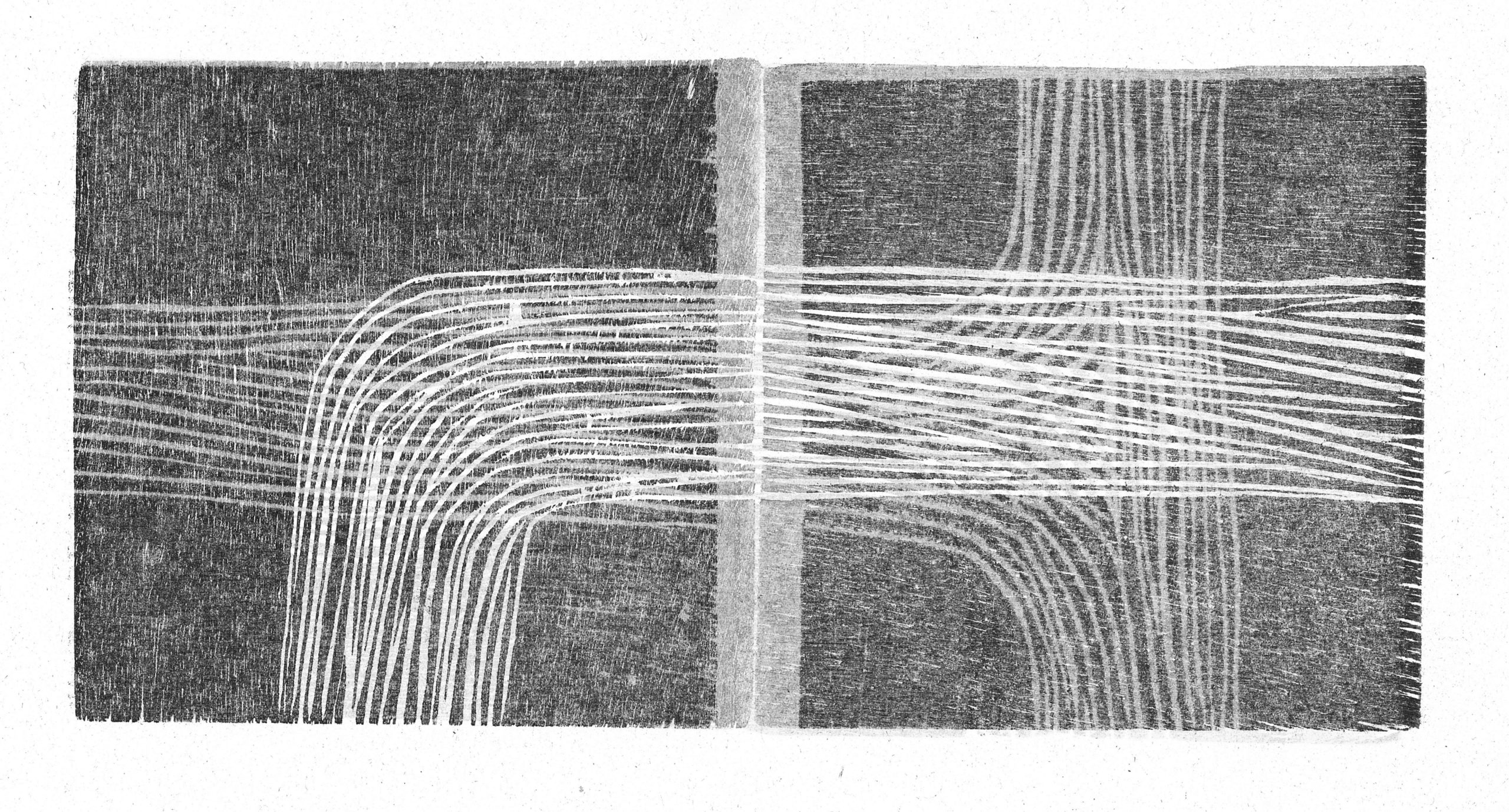 La gravure sur bois m’a permis de mettre l’éveil sur une cursivité dans les être vivants, humains et arbres.