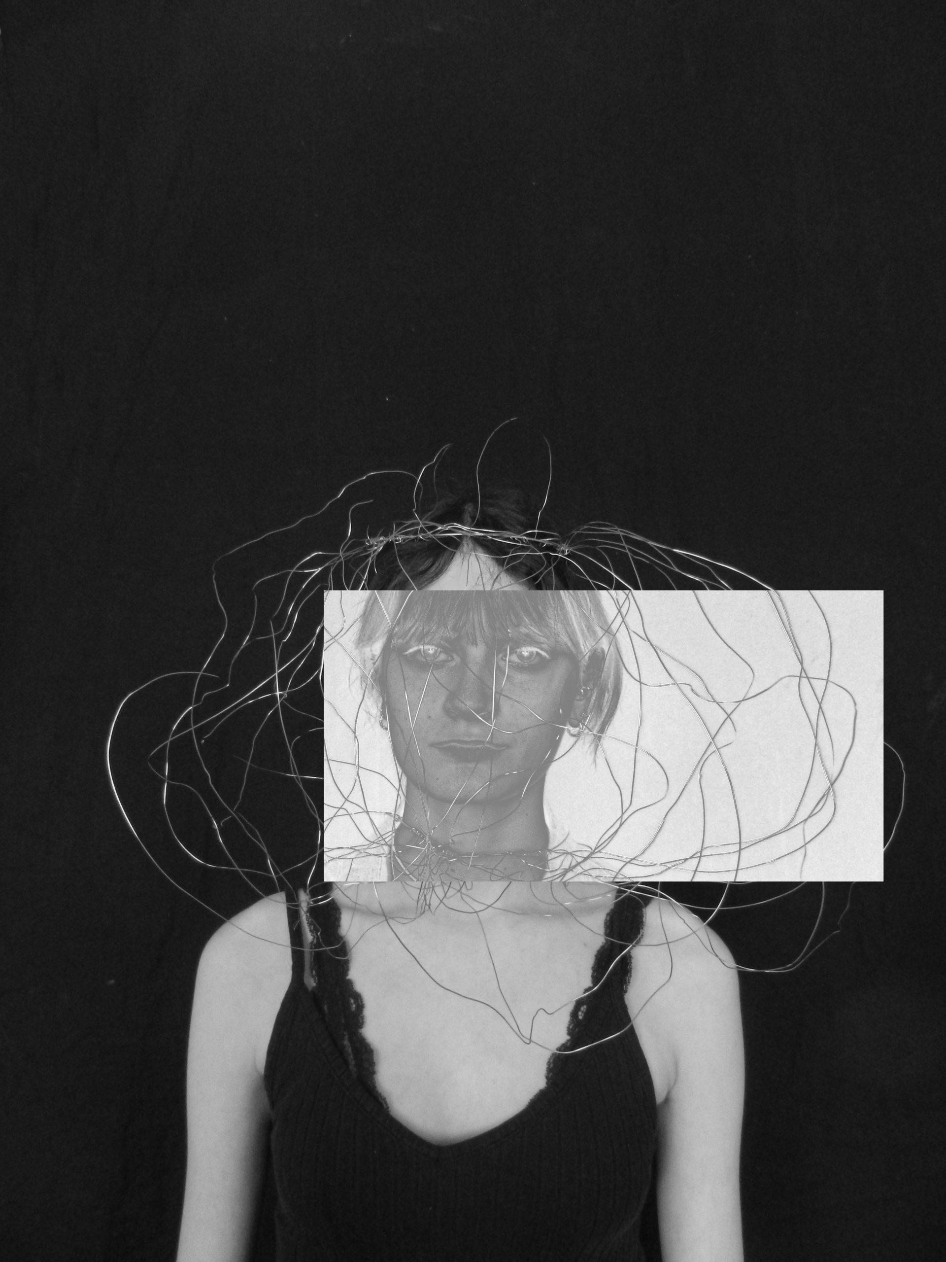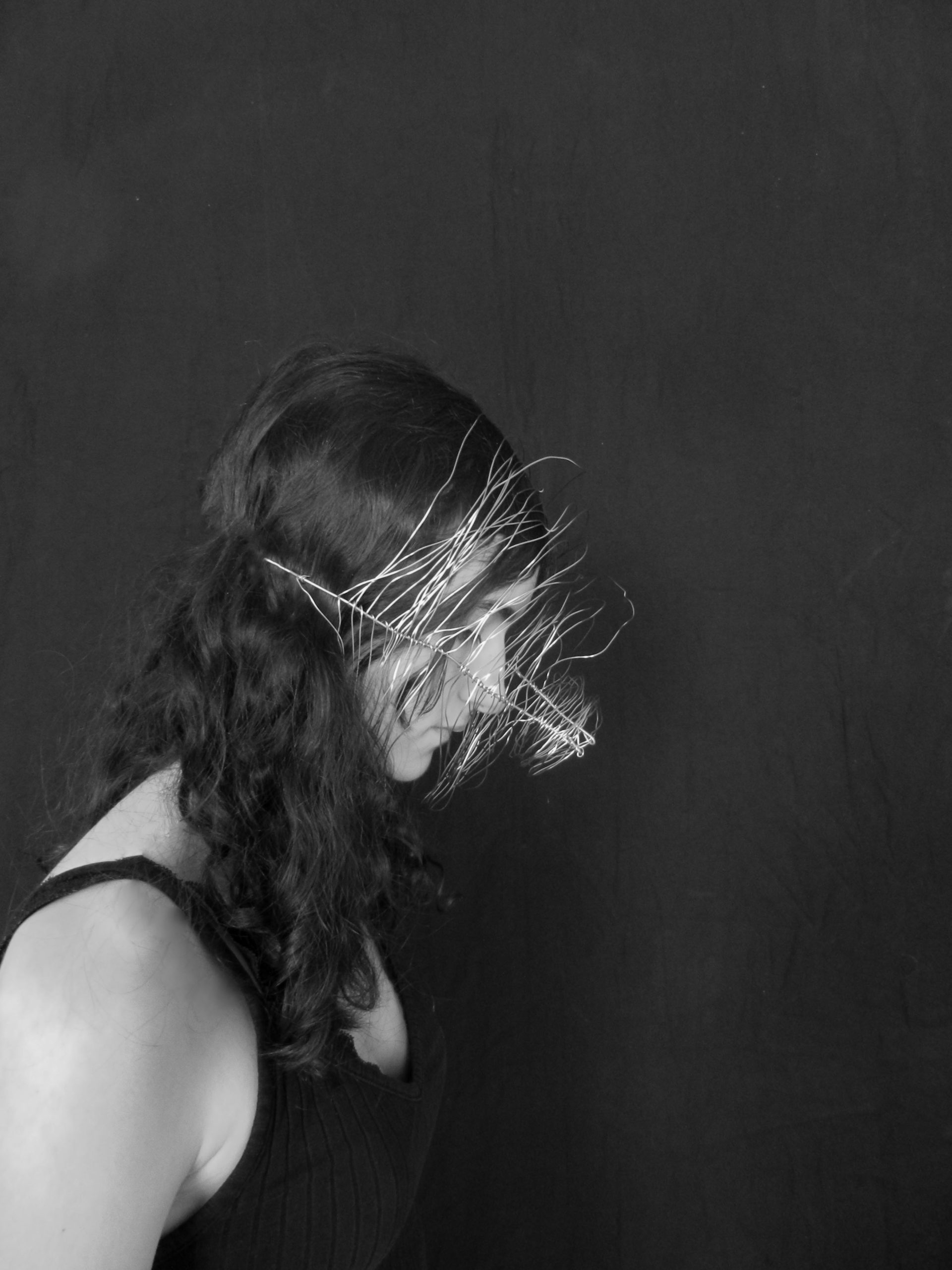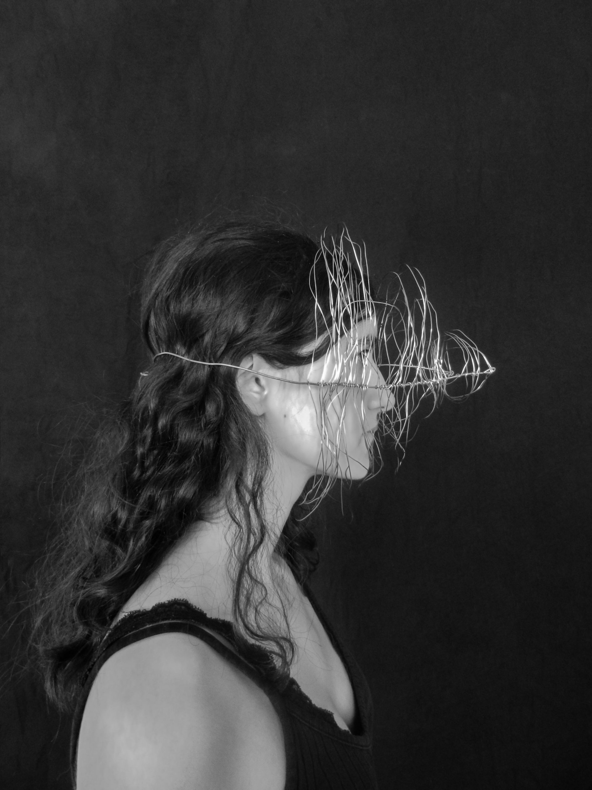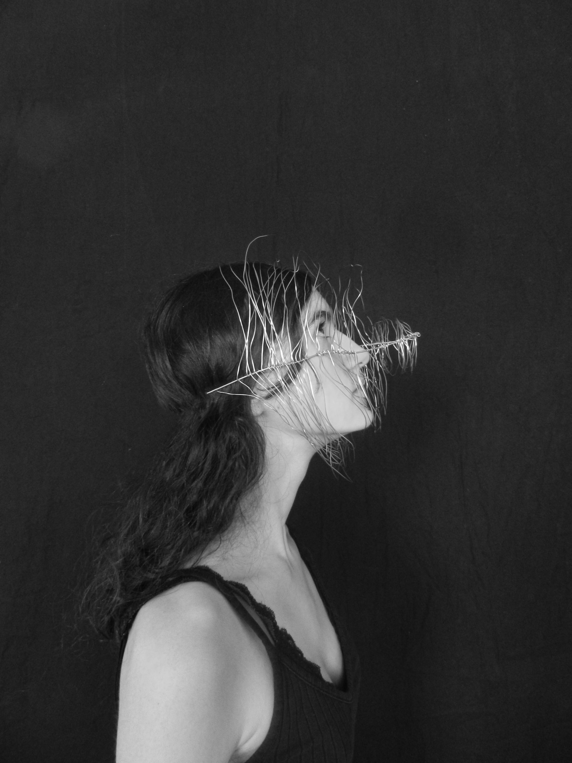 Créer un objet à partir du fil de fer et le mettre en valeur grâce au montage photo. L’idée provient de l’experimentations des formes autour du noir et blanc.