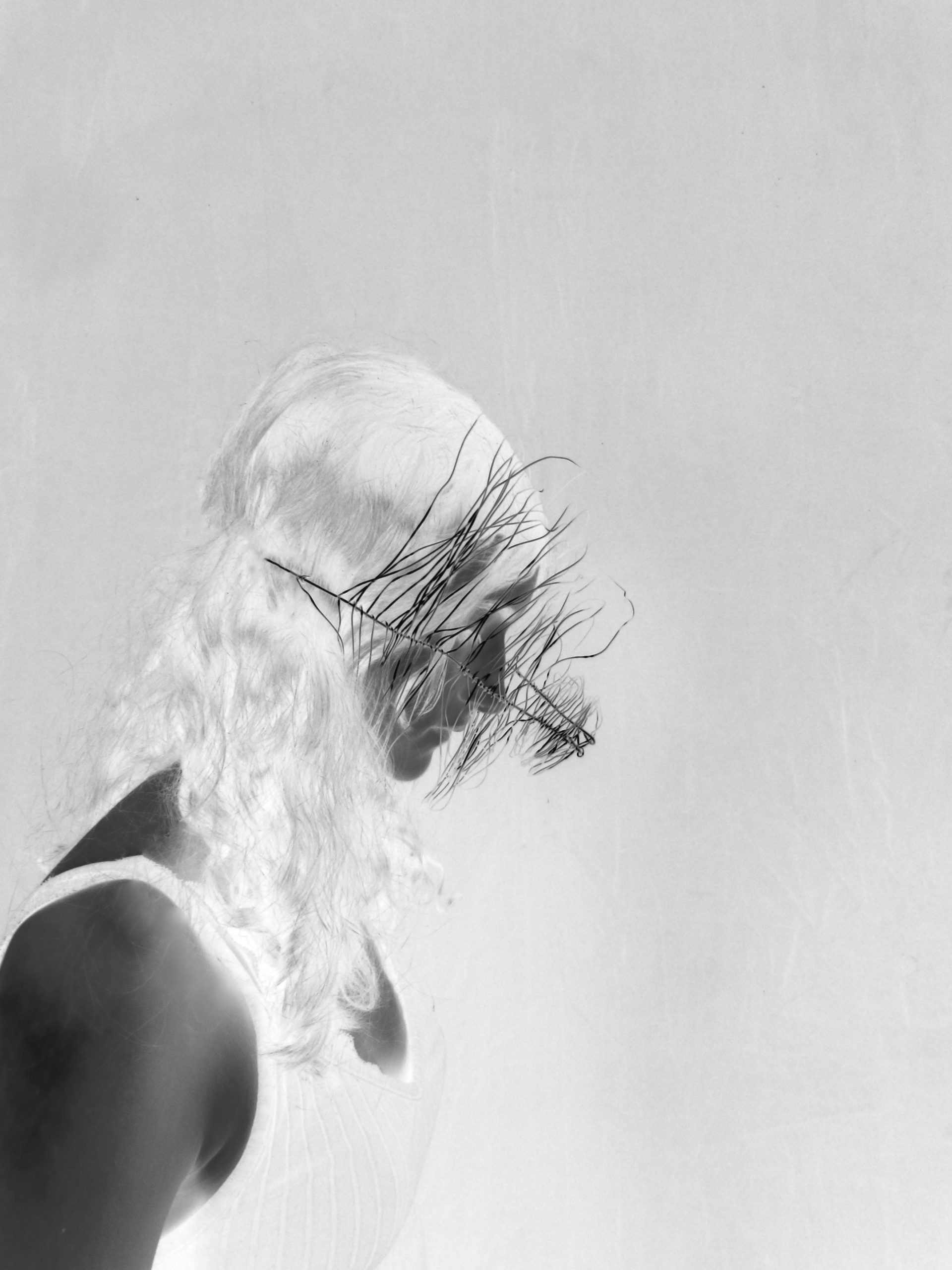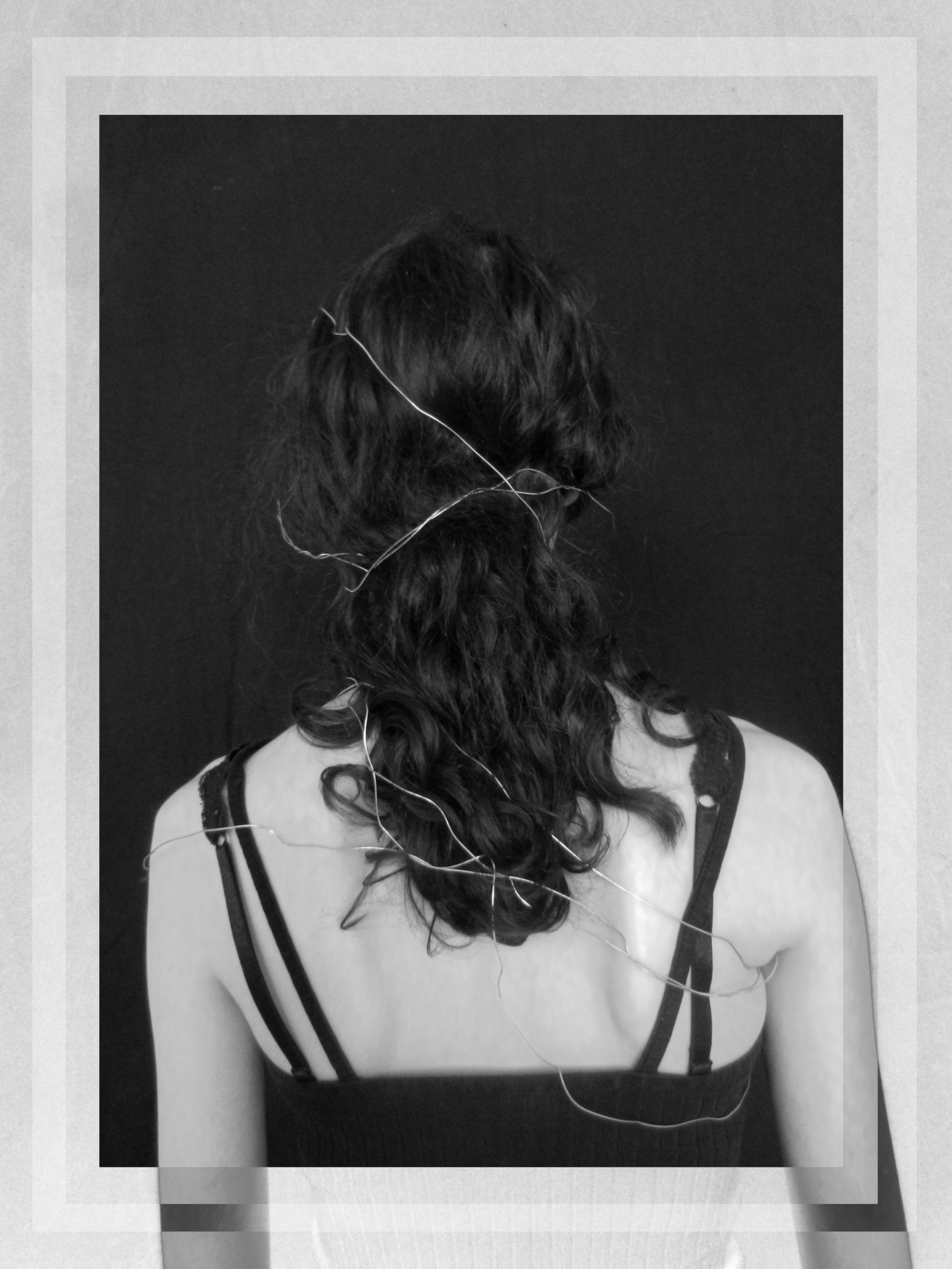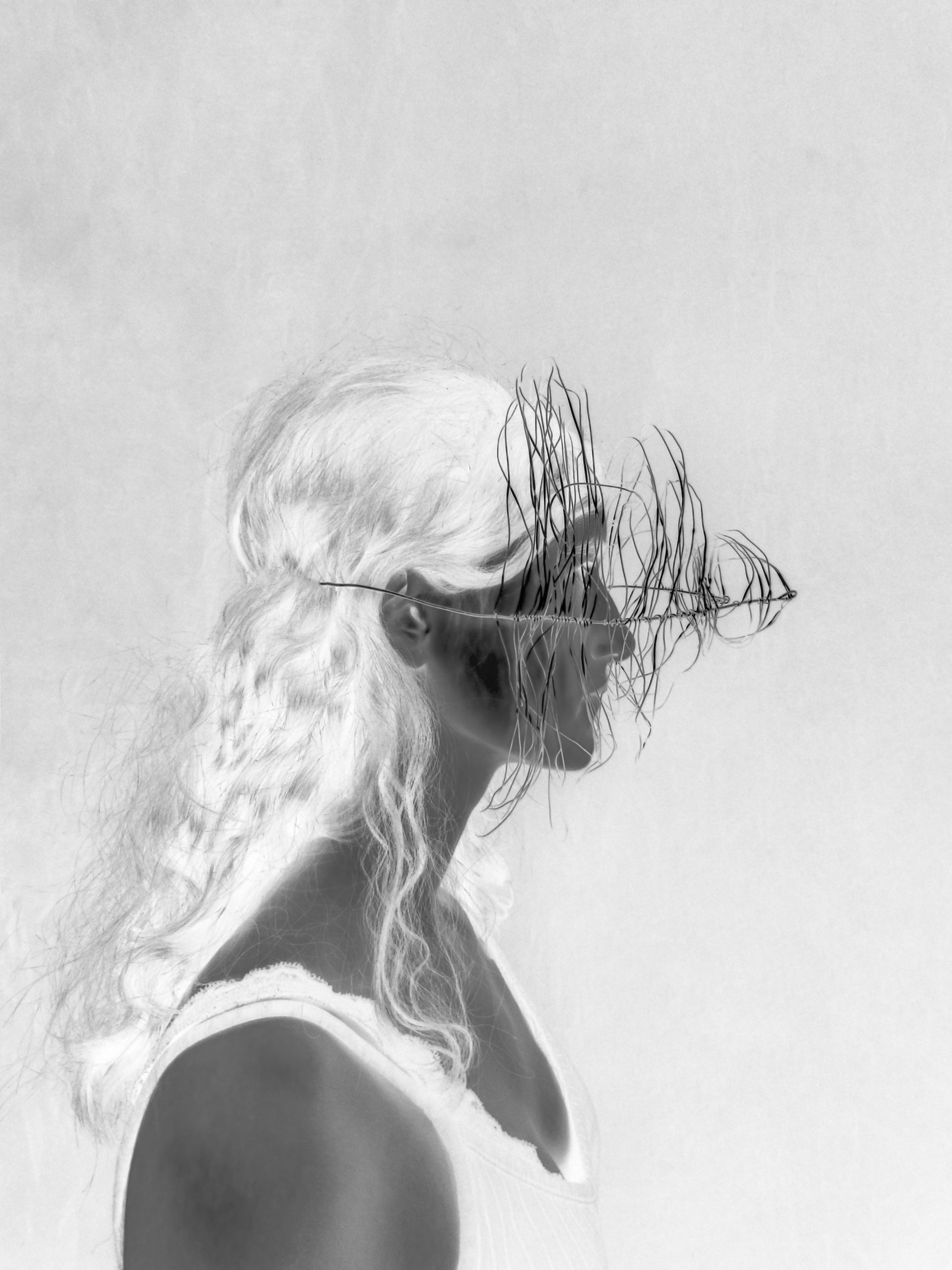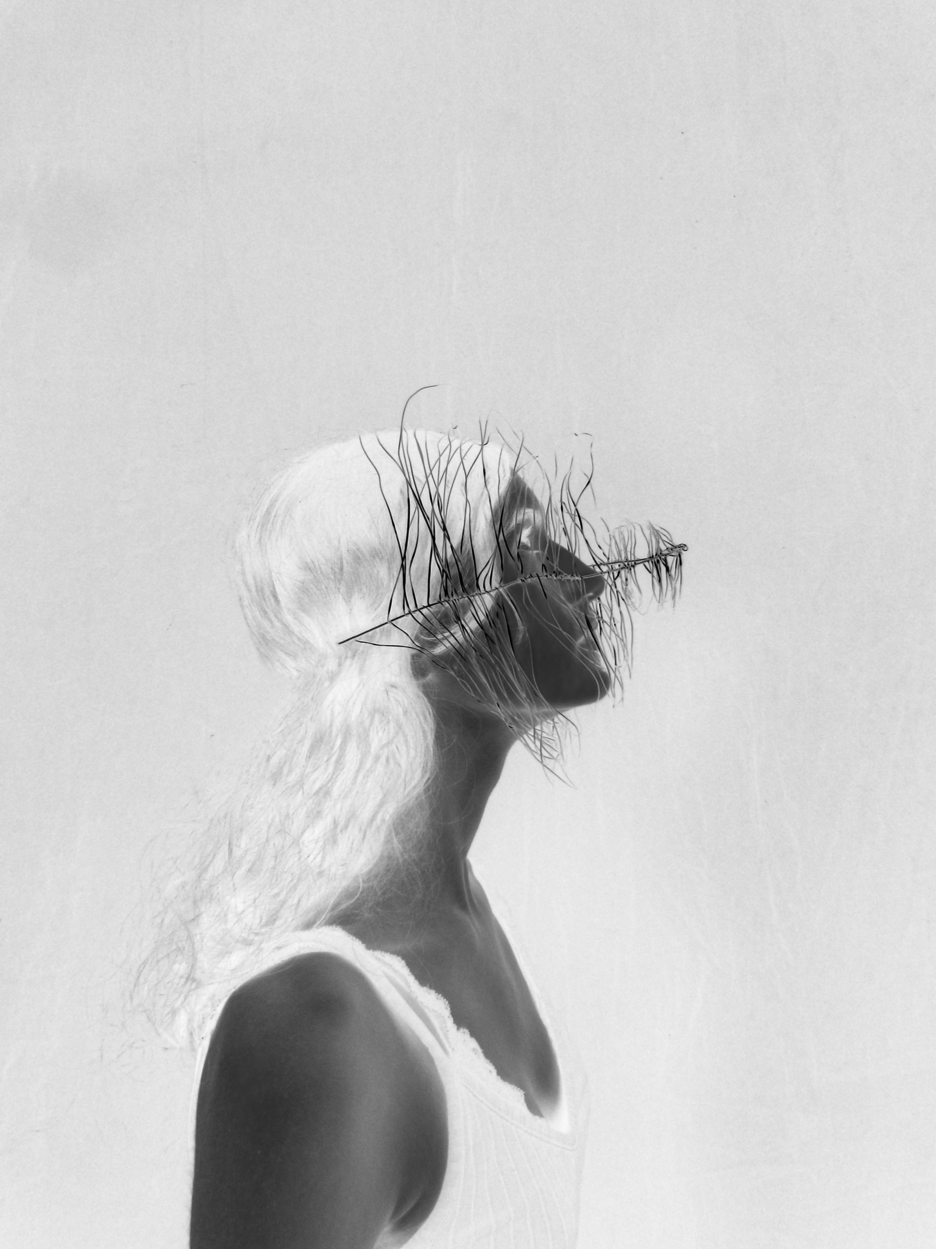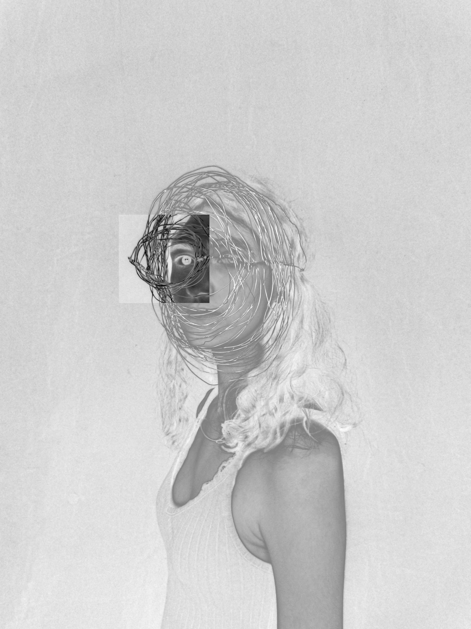 Créer un objet à partir du fil de fer et le mettre en valeur grâce au montage photo. L’idée provient de l’experimentations des formes autour du noir et blanc.