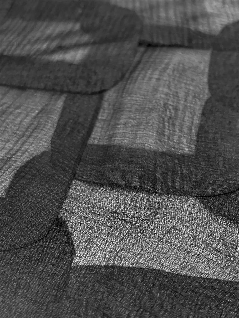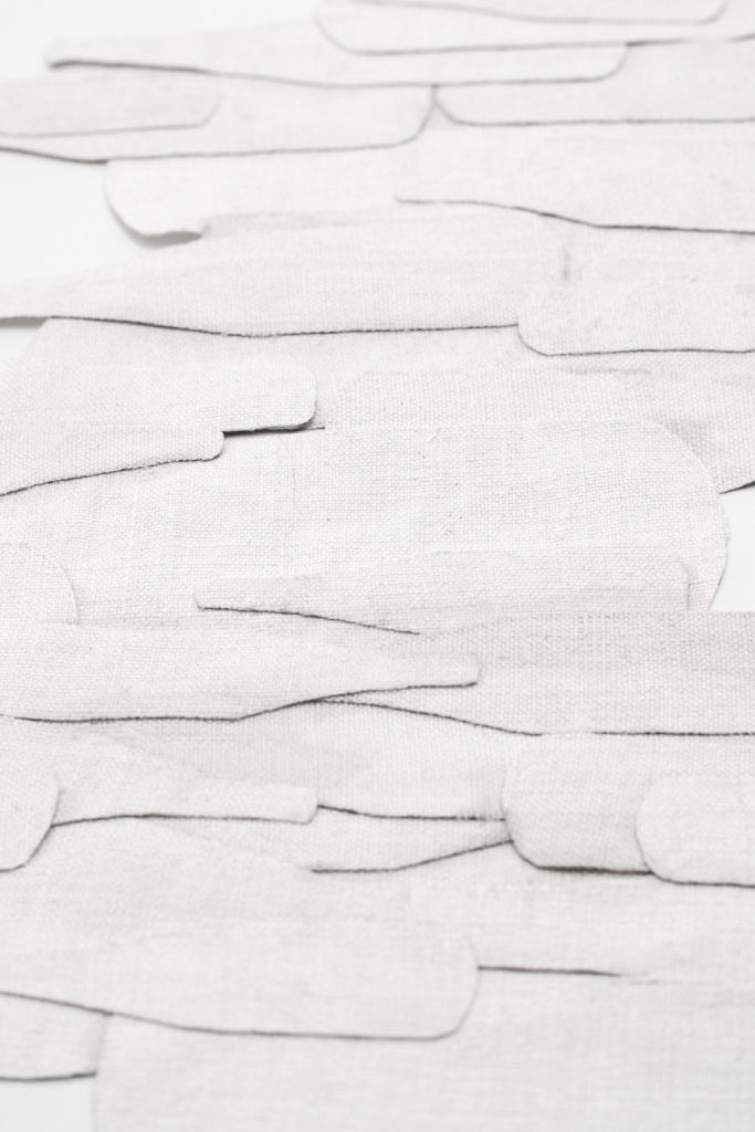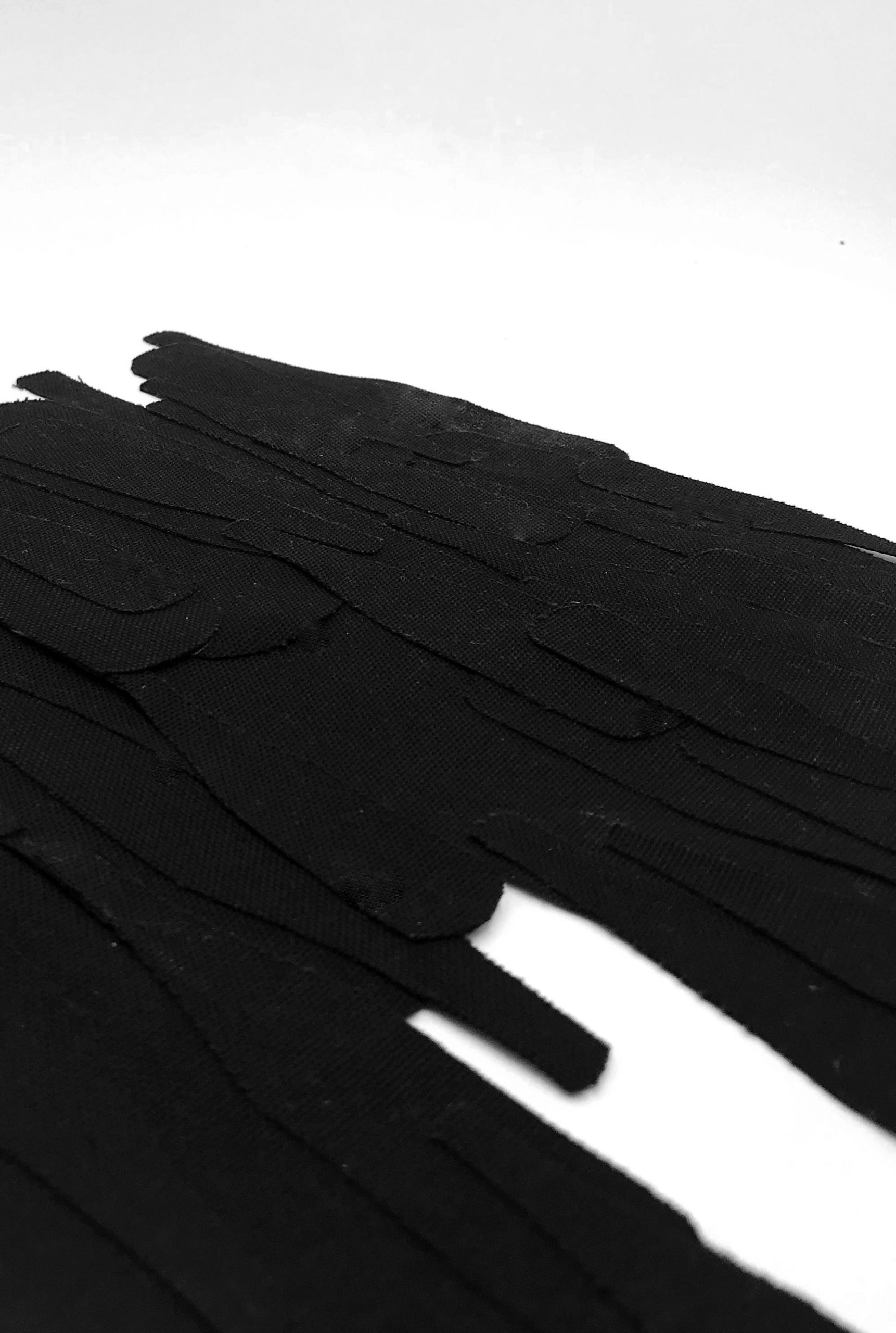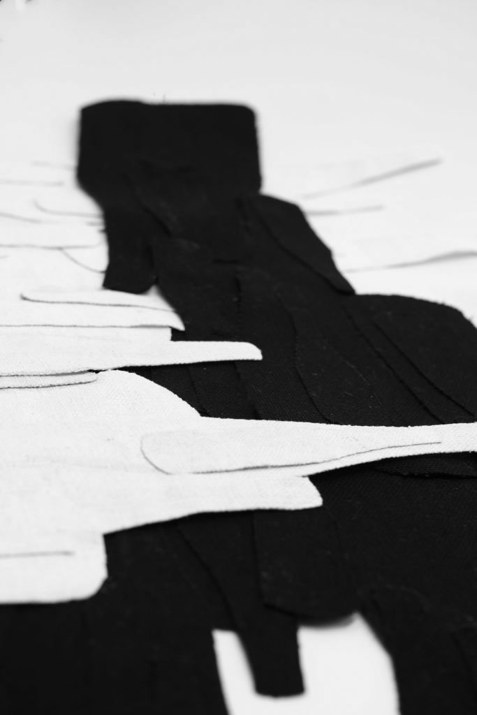 La matière textile reprends le principe d’accumulation et d’assemblage, le noir le blanc